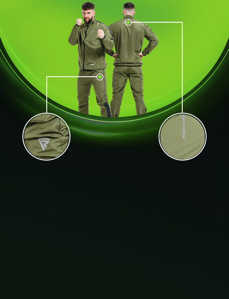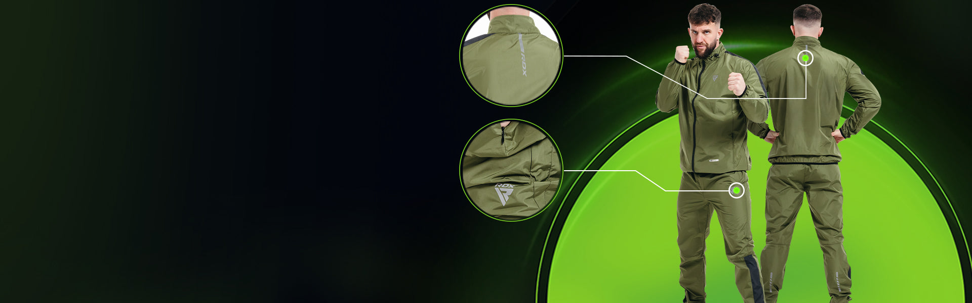 Experience eco-conscious comfort and unleash 5x sweat power with the RDX C1 sweat suit. Compliant with REACH and OEKO-TEX 100 standards, it features Heat Suit™ Tech with a distinctive silver lining in our latest Instant Sweat™ Fabric. This body-hugging design with reflective accents on the front, back, and sides lets you conquer workouts indoors and outdoors naturally.