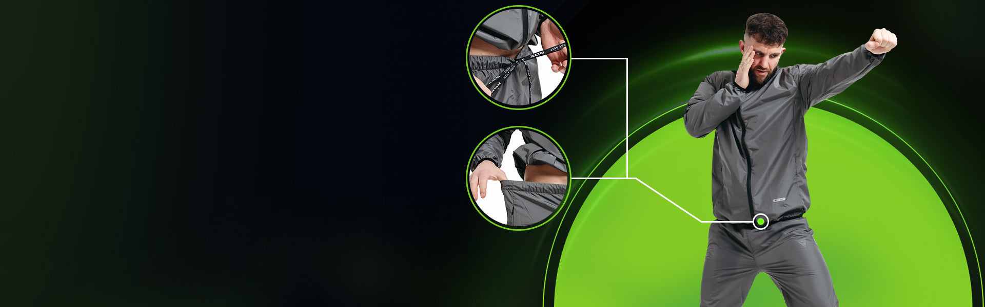 These suits are made to help you sweat more profusely while exercising. We manufacture them using PU-coated Instant Sweat™ Fabric and silver inner lining that expedites weight loss and traps heat effectively.
