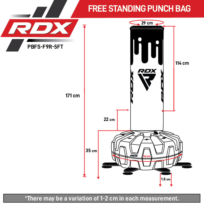 Unleash the champion within and conquer the ring with RDX's F9 5FT Adults FREE STANDING PUNCH BAG. Crafted to match your relentless dedication, this gear combines cutting-edge shock-absorbing connectors, padded grips, and Hexa-Truss stability for optimal performance. Train with unwavering confidence as its captivating aesthetics make a bold statement in the gym. This reliable companion unlocks your true potential, propelling you to new heights and enabling you to surpass your limits. Dominate every round, overcome any challenge, and achieve greatness with RDX's F9 punch bag by your side. Elevate your training and become an unstoppable force in the ring.