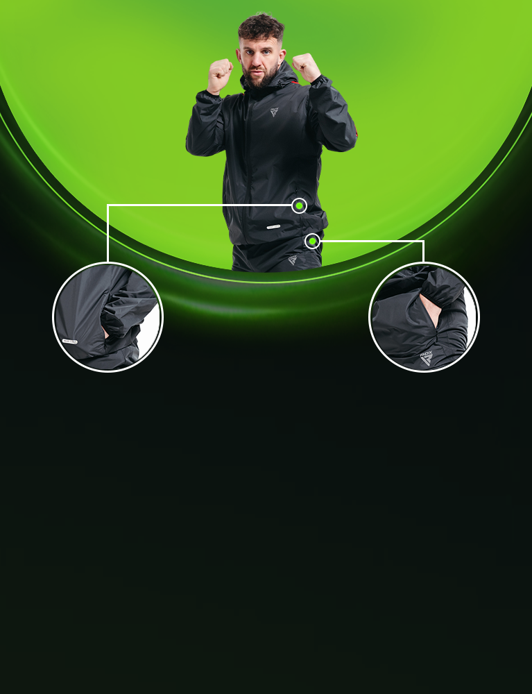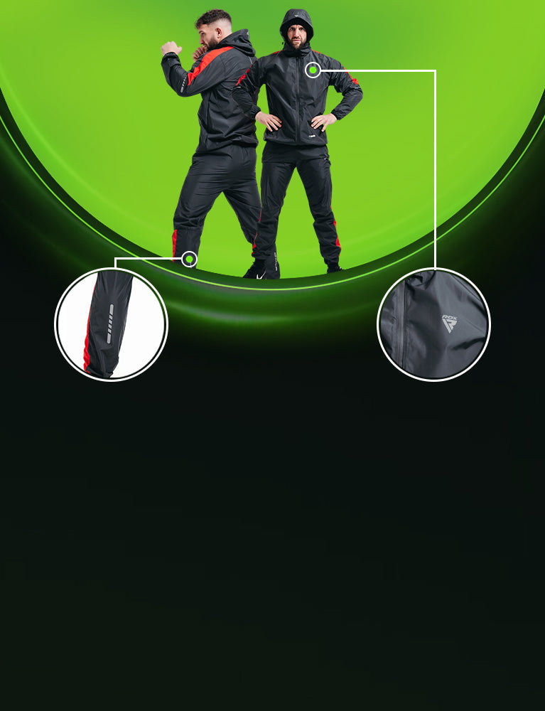 Dominate your workouts with the RDX H1 Sauna Suit, your eco-conscious companion for efficient perspiration and scorching calorie burn. Crafted with eco-friendly materials that meet strict OEKO-TEX 100 and REACH standards, the H1 prioritizes both your health and the planet. It features stylish, form-fitting, heat-retaining design with special silver lining.