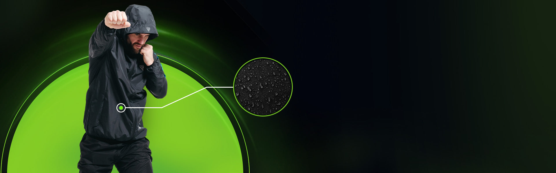 - Windproof and water-resistant construction for all-weather training, featuring a drop-shade hood.