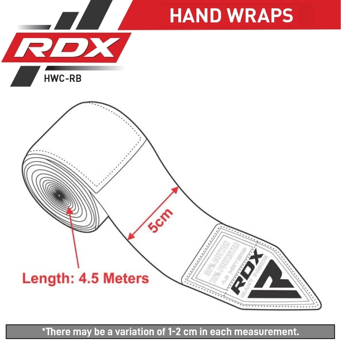 RDX throws only knock out combo deals! Enjoy 3 pairs of our highly durable and long-lasting hand-wraps that are made from polyester, cotton and woven carbon fiber. 4.5 meters long with a thumb loop on one end and hook loop closure on the other. Pleasant in wrapping, but sturdy when it comes to holding your knuckles together, these wraps were made to complete your training experience