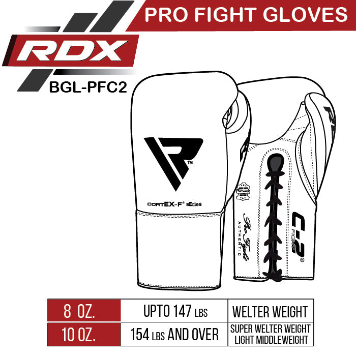 RDX C2 Fight Lace Up Leather Boxing Gloves BBBOFC/BIBA/WBF/NYAC /NEVADA APPROVED