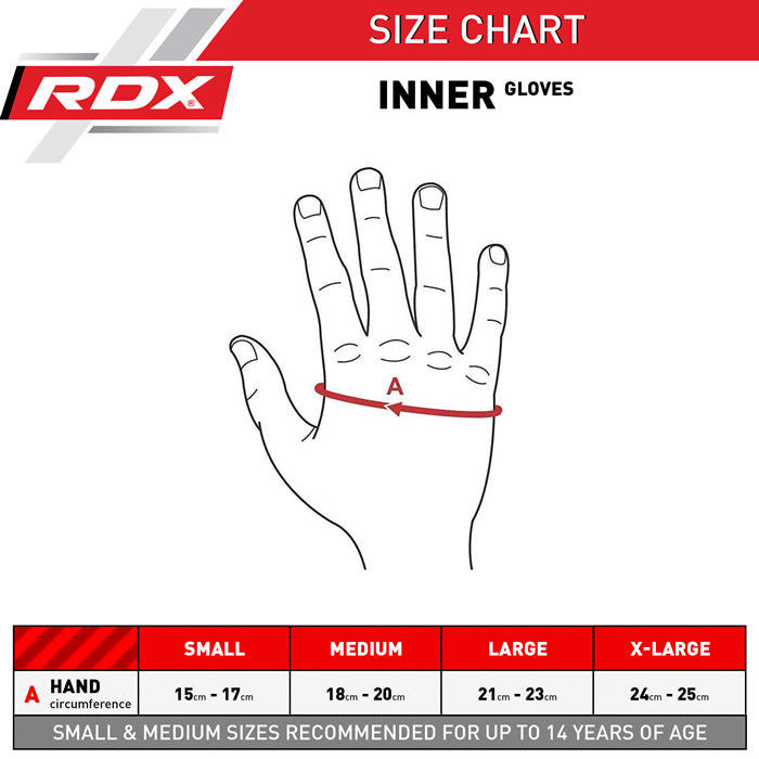 Outclass your opponents with our authentic Maya Hide under gloves; designed to give you the edge, whether you are going toe-to-toe in combat, or training with heavy bags. Forget hand wraps; we've combined an 8mm slab of Shell-Shock, gel with over 10mm of compressed foam padding to ensure maximum shock absorption abilities. Neoprene finger webbing and a padded palm bar give an unstoppable combination of flexibility and grip, allowing these gloves to fit snugly under your boxing gloves. Let nothing stop you from delivering the ultimate blow. These versatile gloves can also be used without boxing gloves, making them the perfect partner for speed ball training, and are even suitable for light grappling, thanks to their lightweight but grippy design.(SMALL MEDIUM SIZES RECOMMENDED FOR UP TO 14 YEARS OF AGE)