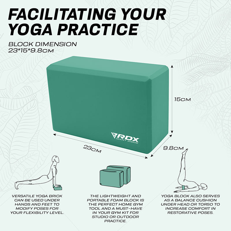 Dieser robuste Schaumstoff-Yogablock ist Für Anfnger und Fortgeschrittene gleichermaŸen geeignet und bietet eine starke Unterstützung Für deine Bridge-Posen und einen komfortablen Auftrieb, um deine Ausrichtung in der Mondsichel-Haltung zu perfektionieren. Fge diesen Yogablock in optimaler GrŸe (23*15*9,8cm) zu deinem Home Gym Essential und deinem Yoga Zubehör hinzu, um deine Praxis vielseitiger zu gestalten. Kultiviere einen gesunden Energiefluss, indem du mit den RDX EVA Schaum Yoga-Blcken Balance und Ausrichtung in deine Form und deinen Alltag bringst.