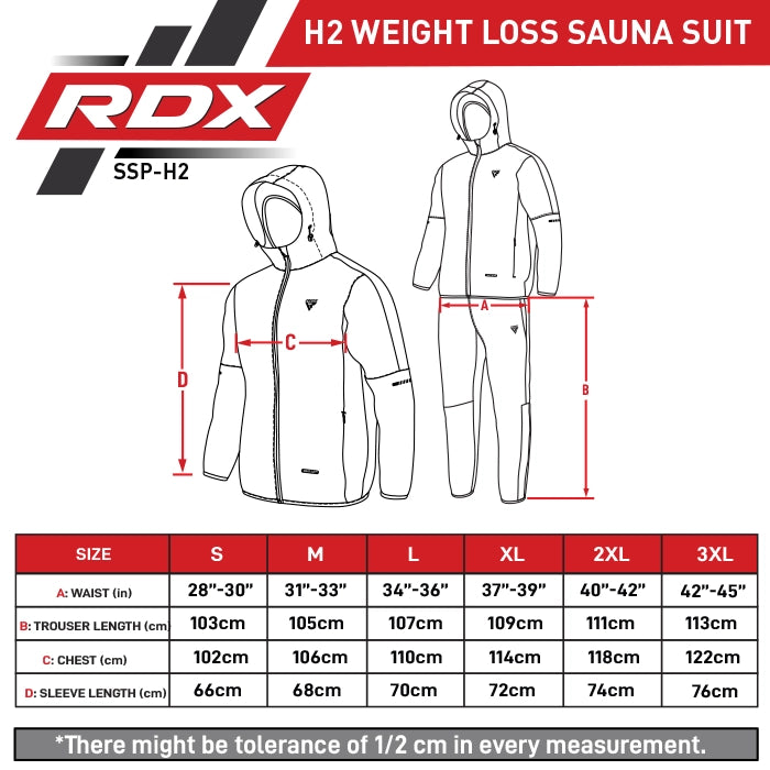 Erlebe fnffache SchweiŸleistung und umweltbewussten Komfort mit dem RDX H2 Sauna Suit. Der –ko-Krieger (REACH OEKO-TEX 100!) verbessert deine SchweiŸleistung 5x mit dem goldenen/blauen Heat Suit Tech-Futter. Bewege dich mit Leichtigkeit in dem krpernahen Design, verbessere deine Sichtbarkeit mit reflektierenden Komponenten und bezwinge Workouts aller Art, vom entspannten Joggen bis hin zu kraftvollen HIIT-Sessions. Beherrsche die Kunst des effizienten Schwitzens, vermeide unntige Anstrengung und gnne dir gleichzeitig umweltfreundlichen Luxus.