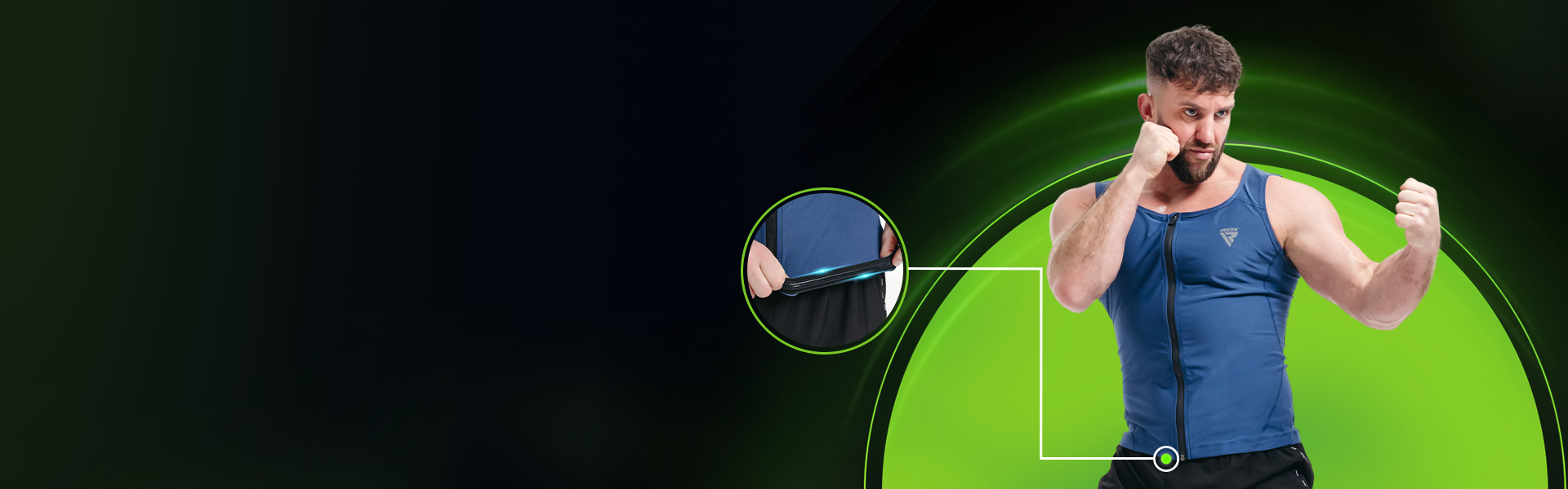- Die Heat Suit Technologie beinhaltet Instant Sweat Gewebe mit einem speziellen blauen Futter, das die SchweiŸproduktion um das Fnffache erhht und die Krperwrme effektiv speichert.