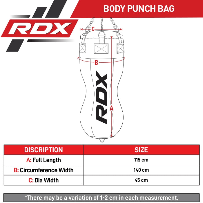 Der RDX BR Ganzkörper-Boxsack mit Handschuhen wurde für bessere Leistung, Haltbarkeit und Stoßdämpfung entwickelt und ist eine unverzichtbare Ergänzung für jedes Training. Dieser Leder-Boxsack ist für intensive Trainingseinheiten ausgelegt und besteht aus hochwertigen Materialien und fortschrittlicher Polsterungstechnologie. Das Set enthält einen Boxsack und Trainingshandschuhe für ein professionelles Trainingserlebnis.